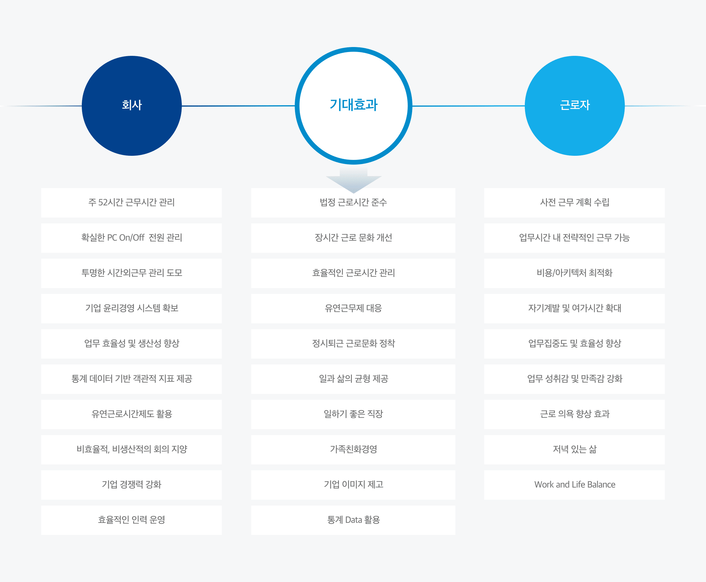 일과 생활이 행복해지는 시스템 “ 엠오피스” 도입을 통해 근로기준법에 따른 법정근로시간 준수 환경을 갖추고, PC-OFF 시스템 도입으로 투명한 시간외근무 관리를 도모하며, 직장 내 워라밸(Work and Life Balance) 문화를 만들어 갑니다