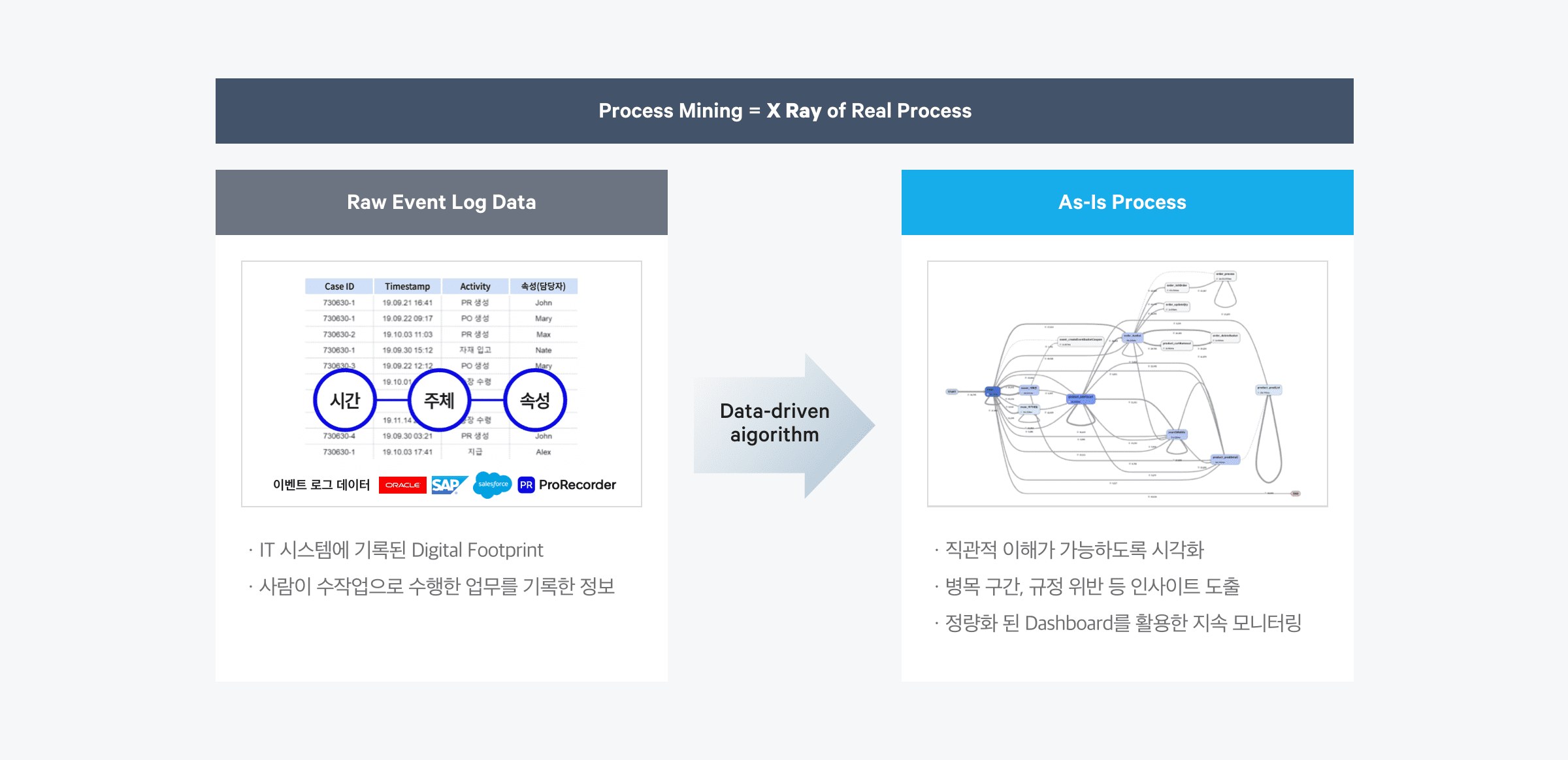 데이터 기반 자동화된 프로세스 도출 및 분석으로 정확하고 빠르며 다양한 관점의 인사이트 도출